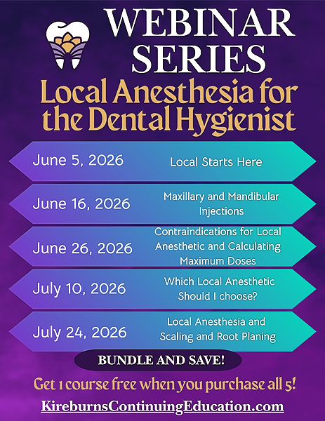 Join me for a comprehensive webinar where I'll help dental hygienists enhance their skills in local anesthesia when performing SRP, from effective techniques to essential documentation for safe patient care.