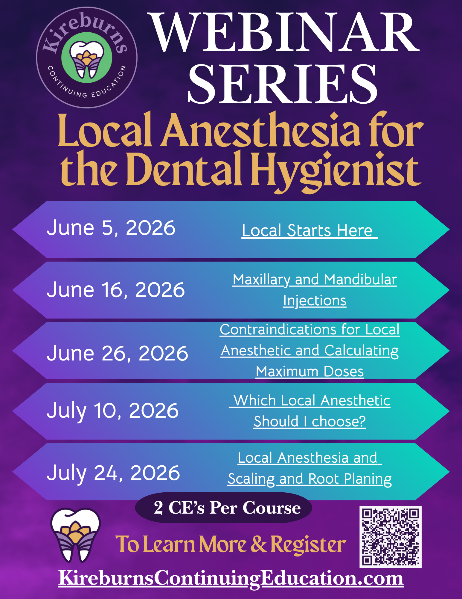 Webinar #5 Local Anesthesia and Scaling and Root Planing (SRP) (5 of 5) July 24th, 2026 9-11AM EST
